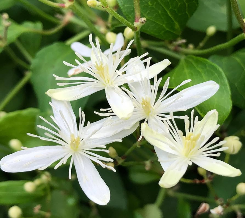 The Sweet Autumn Clematis, also known as Clematis terniflora or Clematis paniculata, is a deciduous vine that is native to Japan and China. It belongs to the Ranunculaceae family and is prized for its profusion of small, star-shaped white flowers that have a sweet, honey-like scent.